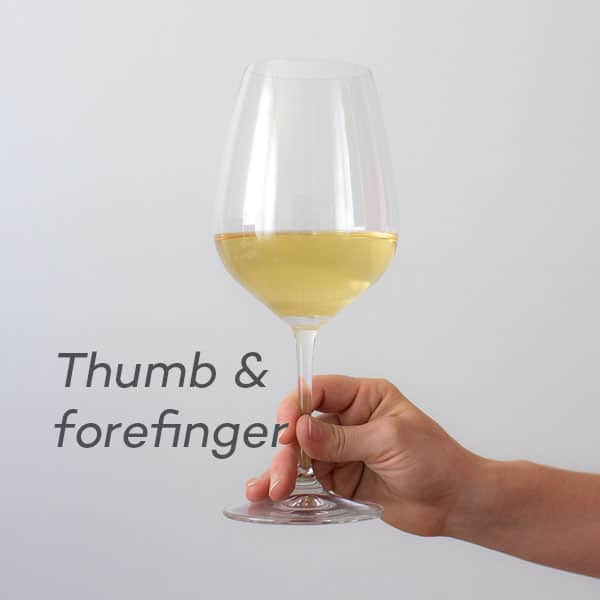 • Only these three fingers will come into direct contact with the stem of the glass. Your remaining two fingers should naturally rest on top of the base.